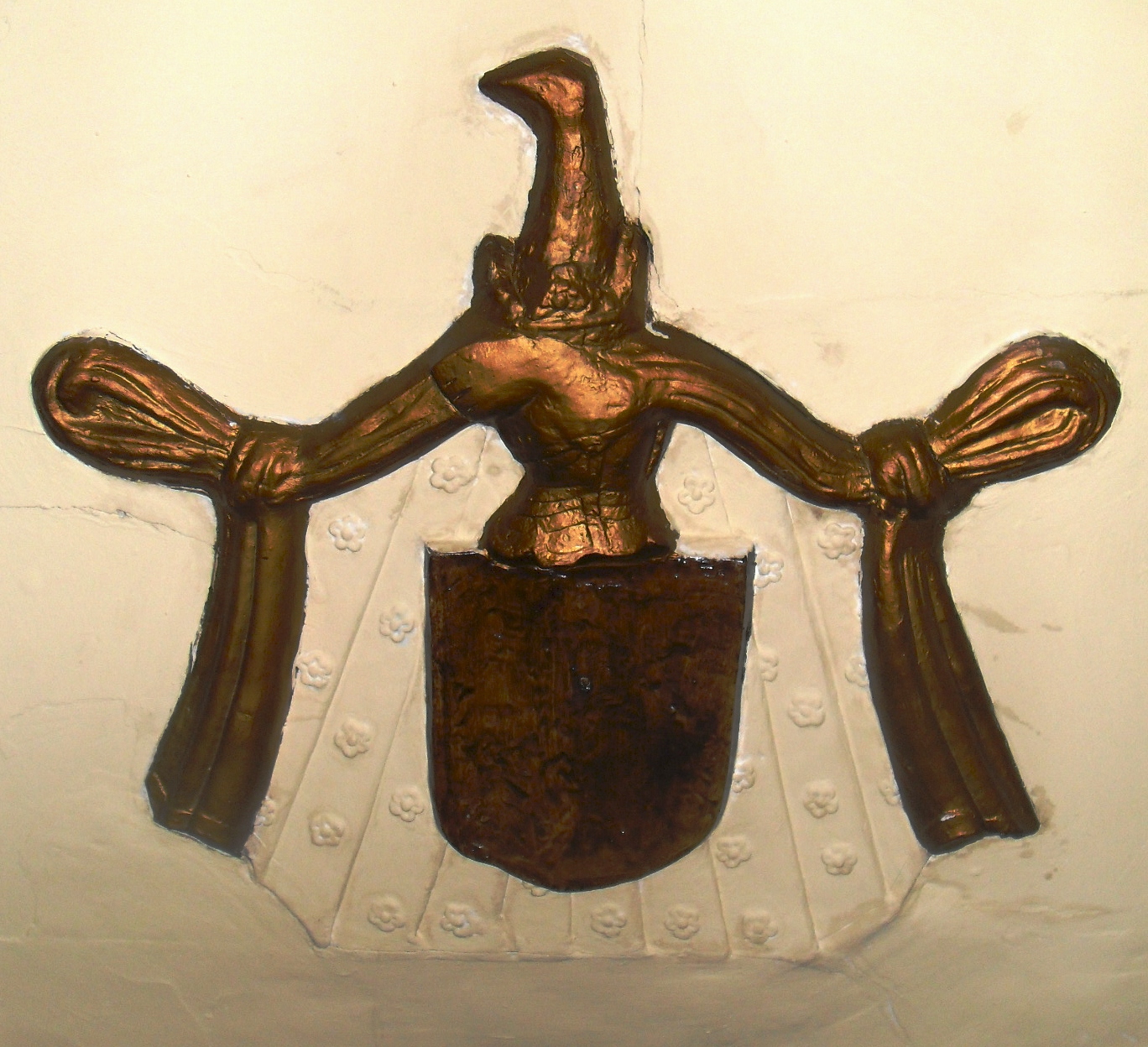 The arms of Comberford impaling Beaumont, representing the marriage of Humphrey Comberford and Dorothy Beaumont, from the ceiling of the Long Gallery in Moat House, Tamworth (Photograph: Patrick Comerford)
